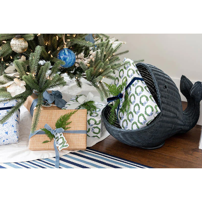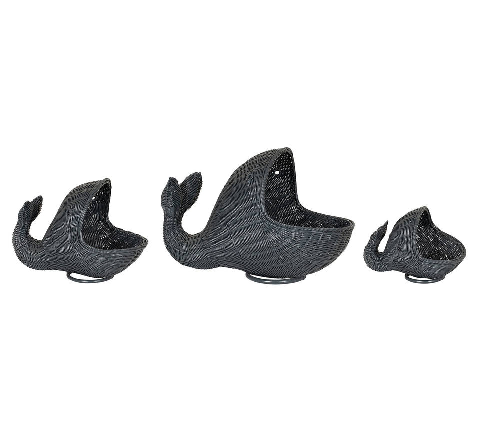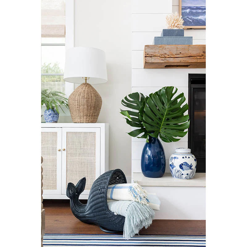 Caja de juguetes de ratán superventas para niños hecha a mano de alta calidad cestas de almacenamiento de ballena de ratán Natural Color azul hecho en Vietnam