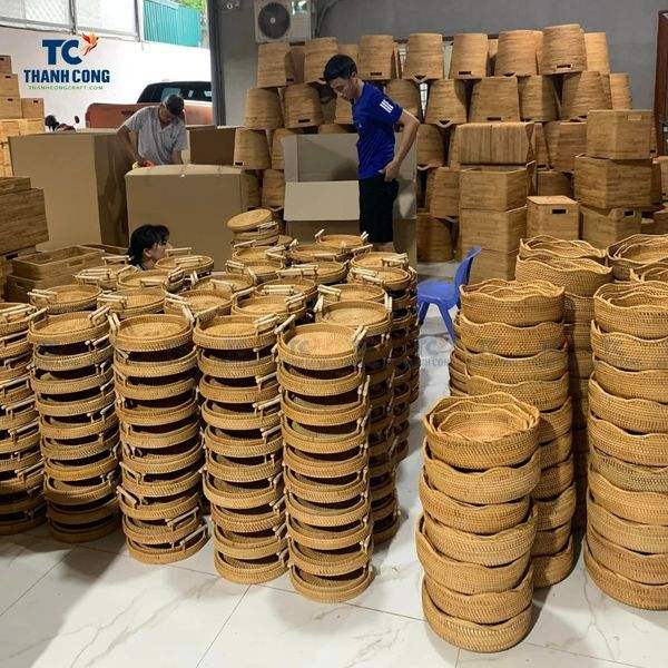 Bandeja de ratán superventas, venta al por mayor de Vietnam, bandeja para servir té, fruta, diseño de vieira relajado, bandeja de ratán azul