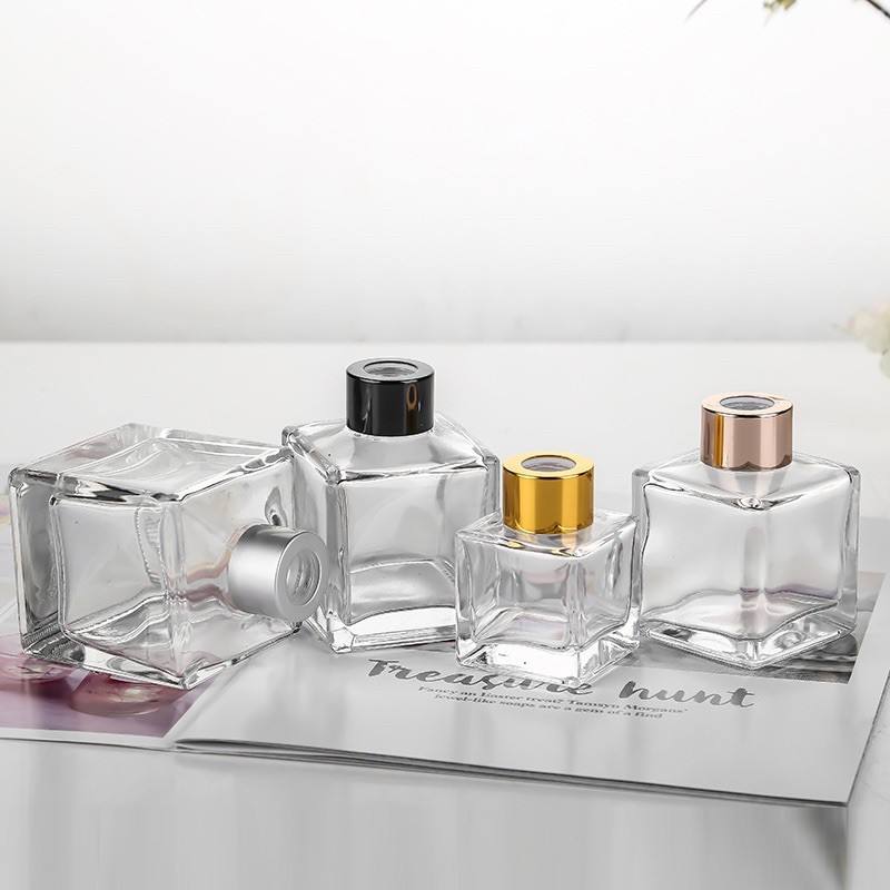 Botella Difusora Cuadrada de Vidrio Reutilizable Más Vendida con Tapa de Rosca, Superficie y Impresión Personalizadas, Económica para Uso con Aromas