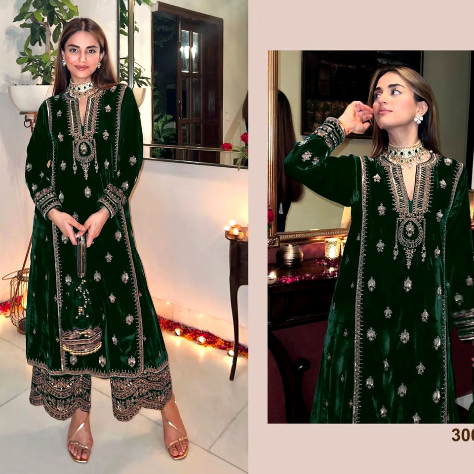 Puro terciopelo pesado bordado superior inferior y Dupatta