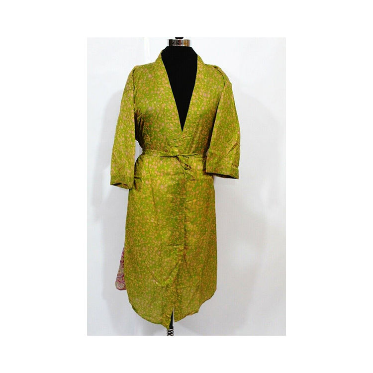 Bata de Kimono Sari de seda superventas, hasta la rodilla, manga completa, cuello en V, bata de Kimono estampada hecha a mano, vestido Maxi para mujeres y niñas