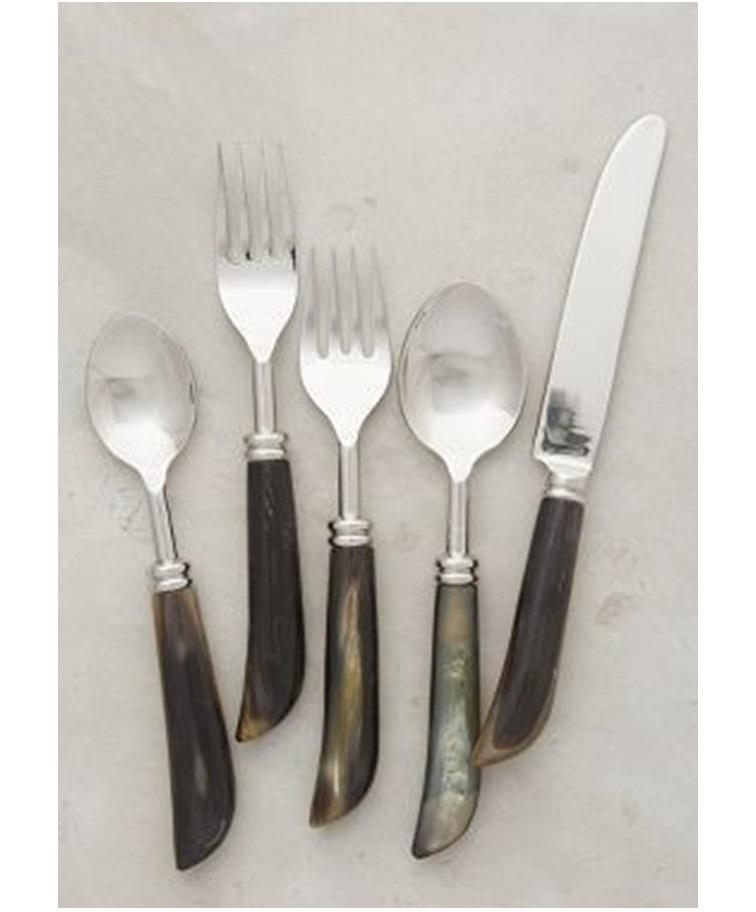 Juego de cubiertos con mango de cuerno Natural de diseño sin complicaciones con acabado de plata superventas para cubiertos de regalo de negocios de boda
