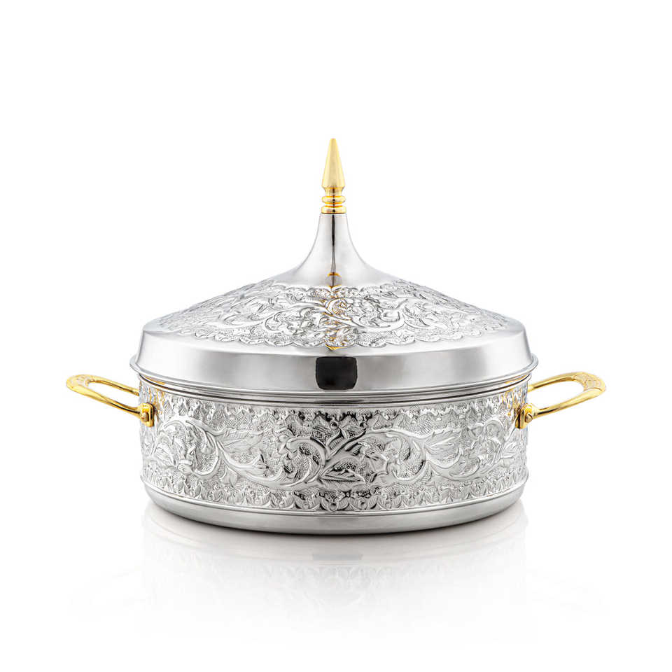 Nombre del producto:Olla para Hotpot de Acero Inoxidable con Forma de Cúpula, Acabado Bicolor y Patrón de Diamante
