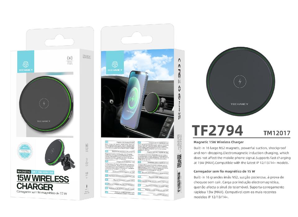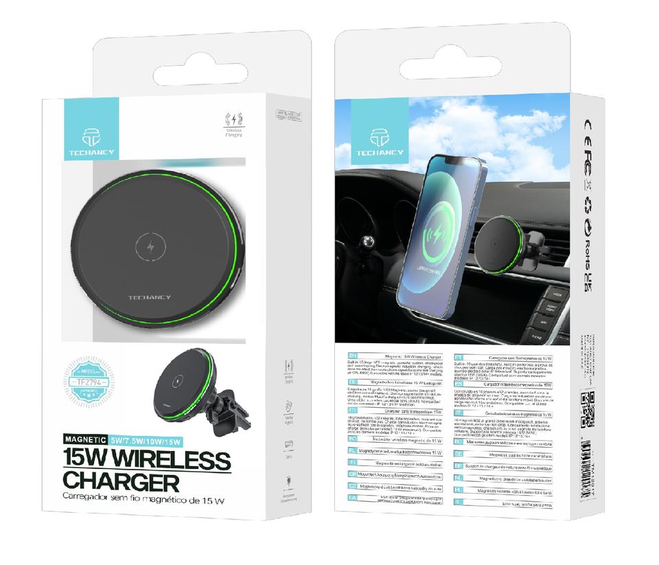 Cargador Inalámbrico Magnético 3 en 1 para Tablero de Auto con Carga Rápida de 15W para Móviles, Superventas
