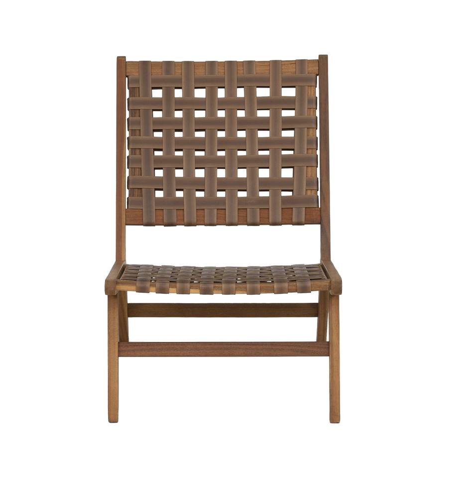 Silla de salón elegante con marco de madera de acacia superventas, asientos modernos con correa de cuero para exteriores para balcón, patio para hoteles fabricados