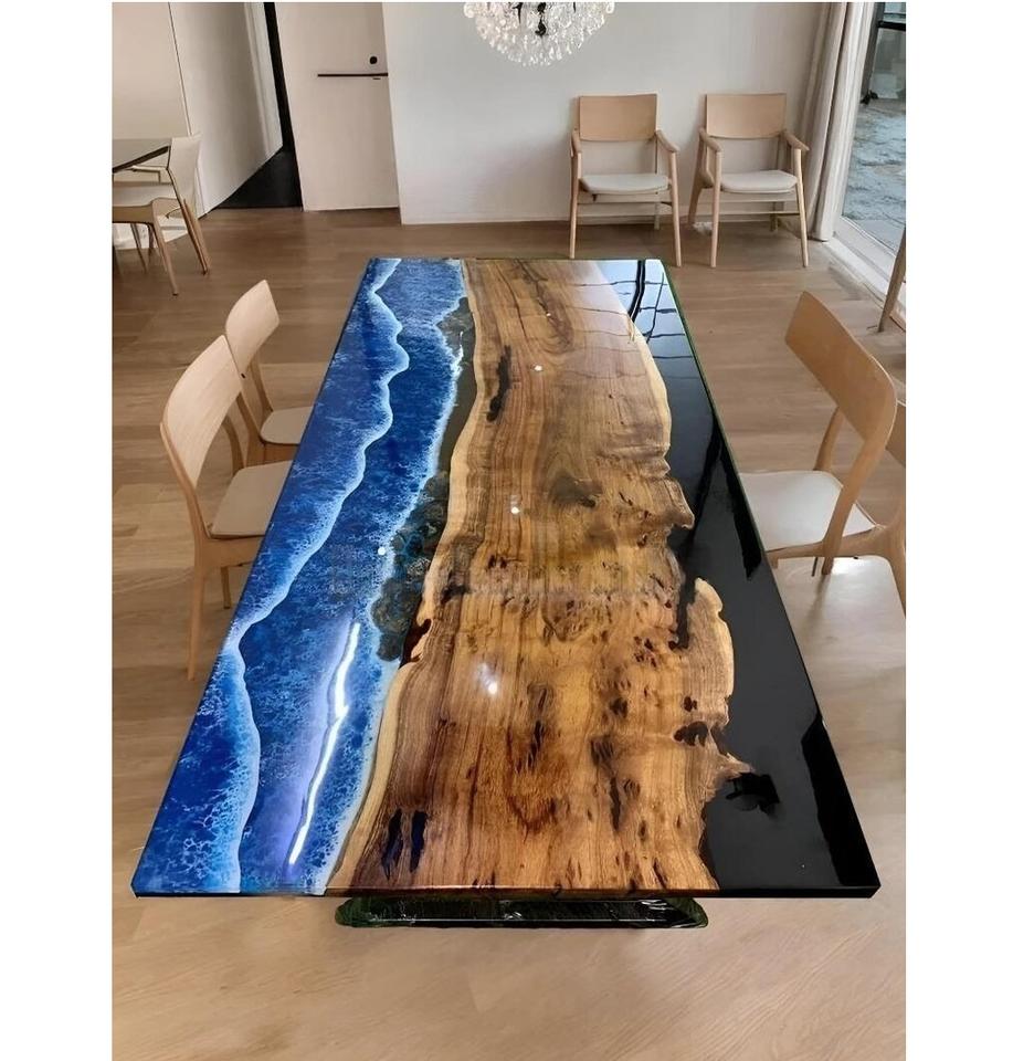 Mesa de Comedor de Madera Maciza con Incrustaciones de Resina Más Vendida para Cafeterías, Bistrós y Cafeterías de Alta Gama, Disponible a Precio Directo de Fábrica