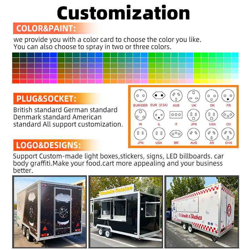 Remolque de Cocina Móvil Cuadrado Más Vendido, Camión de Comida para Comida Rápida con Pintura Personalizada