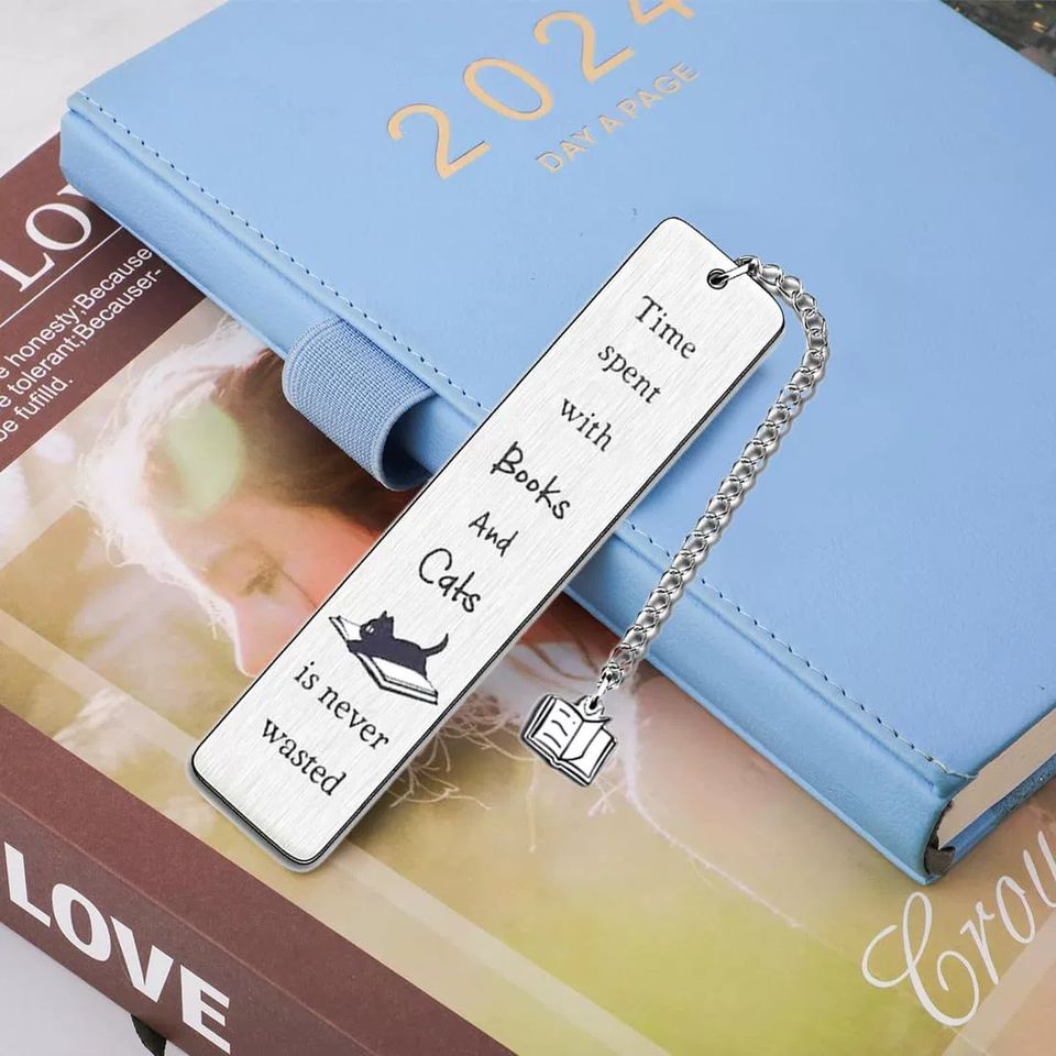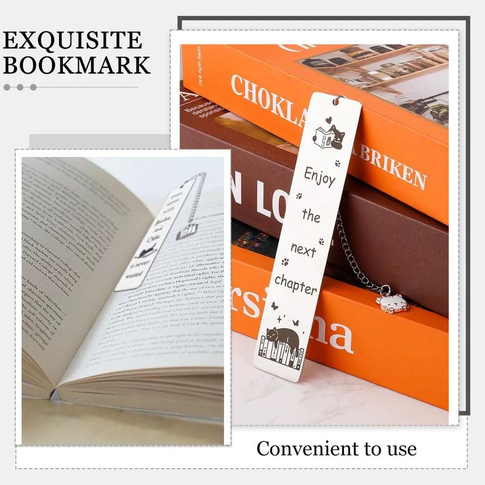 Marcapáginas de Acero Inoxidable con Diseño de Gato, un Regalo Festivo para Amigos