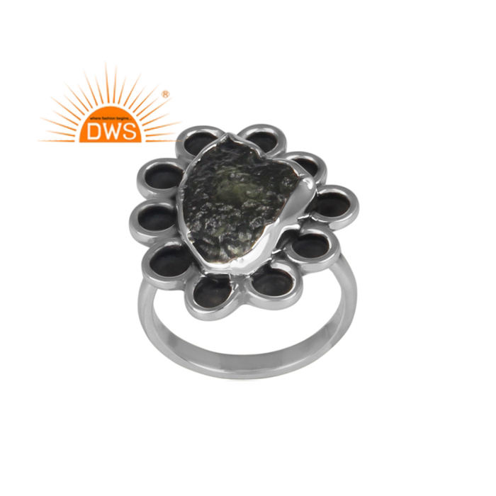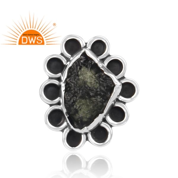 Mejor Venta de plata esterlina natural en bruto moldavita piedra preciosa anillo apilable joyería fabricante