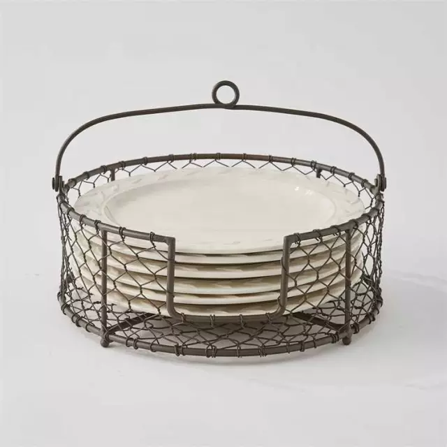 Cesta de almacenamiento para el hogar, plato y platos de cocina, cesta metálica decorativa de forma redonda, superventas
