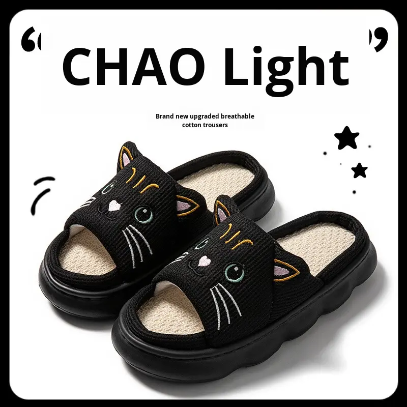 Pantuflas de Verano para Mujer, Diseño de Gato, con Punta Abierta, Suela Acolchada Suave, de Felpa, para el Hogar
