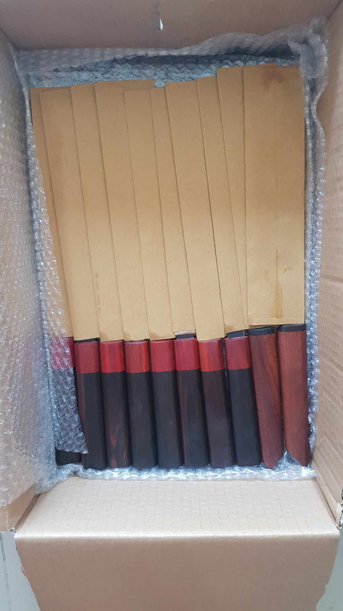 Sapphire Line Juego de cuchillos de cocina de hoja ancha Forjado a mano Kiritsuke Cuchillos para pelar y pan Cuchillas de acero al carbono Caja de 96