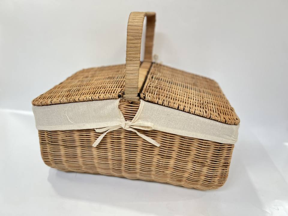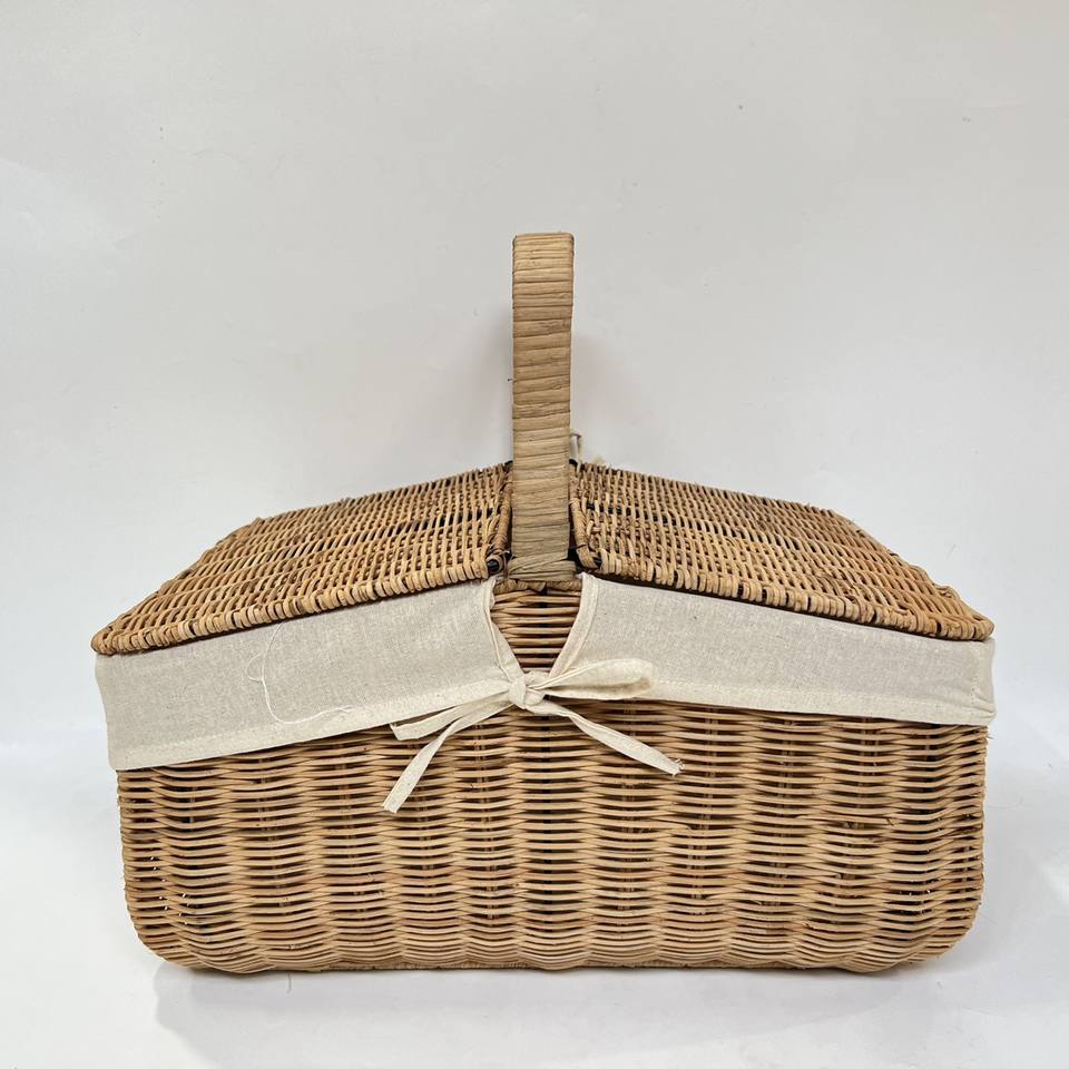 Cesta de pícnic de ratán tejida a mano de diseño tradicional más vendida, versátil y conveniente para picnics al aire libre este verano
