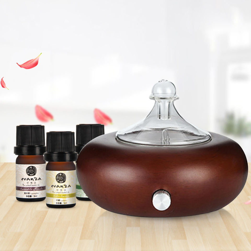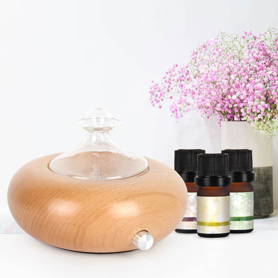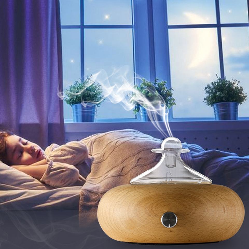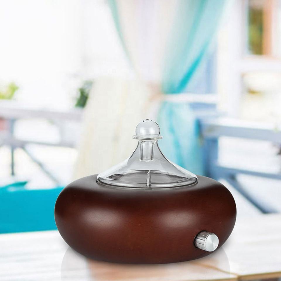 Difusor nebulizador eléctrico portátil alimentado por USB más vendido Vidrio de madera para Spa Yoga Aromaterapia Difusor de mesa sin agua