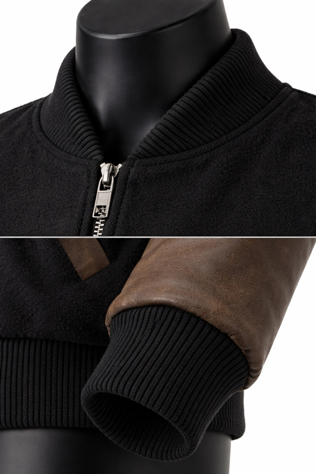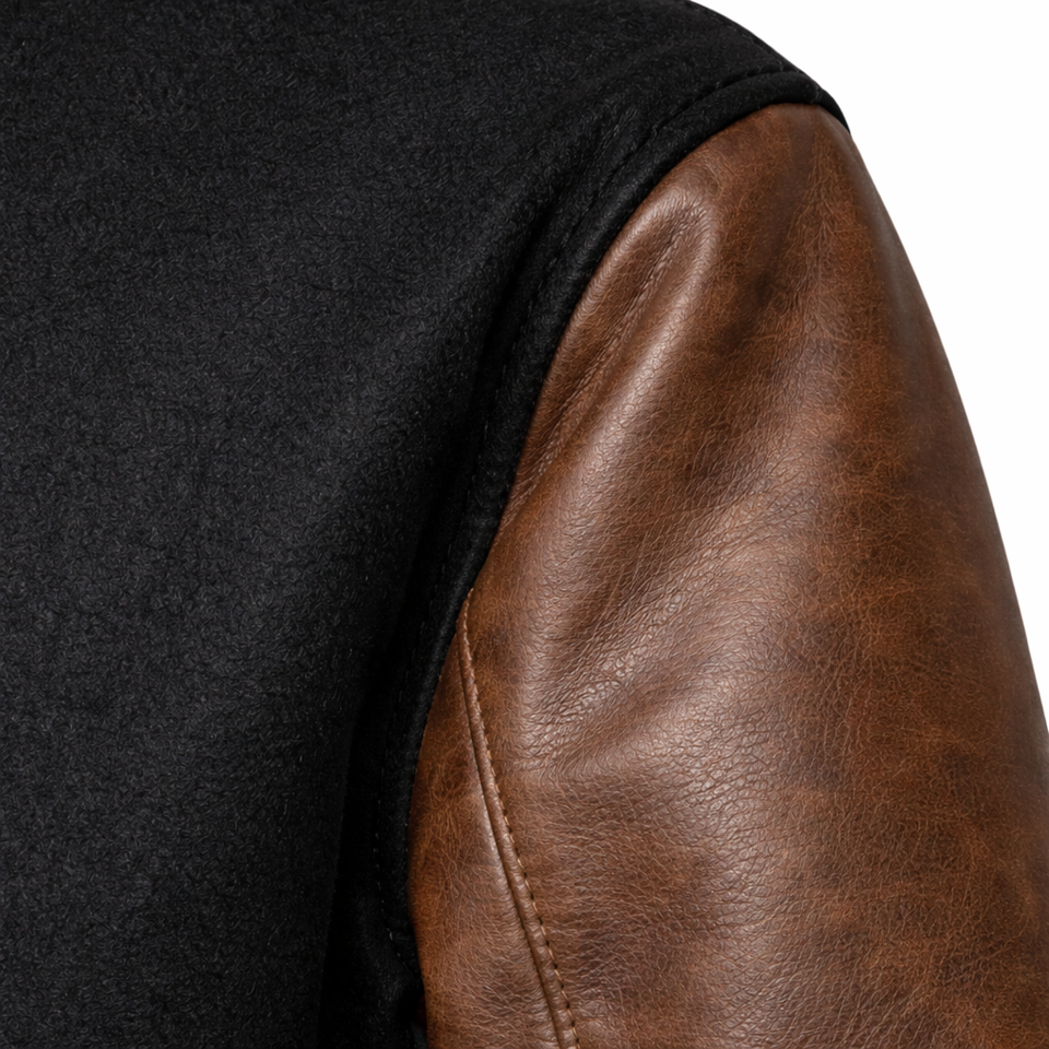 Chaqueta Bomber Estilo Universitario Más Vendida, Mezcla de Lana con Mangas de Cuero Sintético, Cierre de Cremallera, Ropa Exterior Informal de Moda Urbana