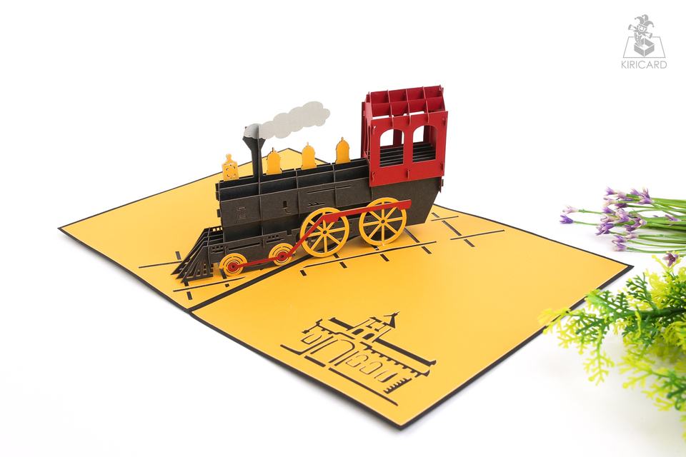 Tarjeta de felicitación emergente de Kirigami 3D de tren clásico vietnamita más vendida, artesanía de papel hecha a mano