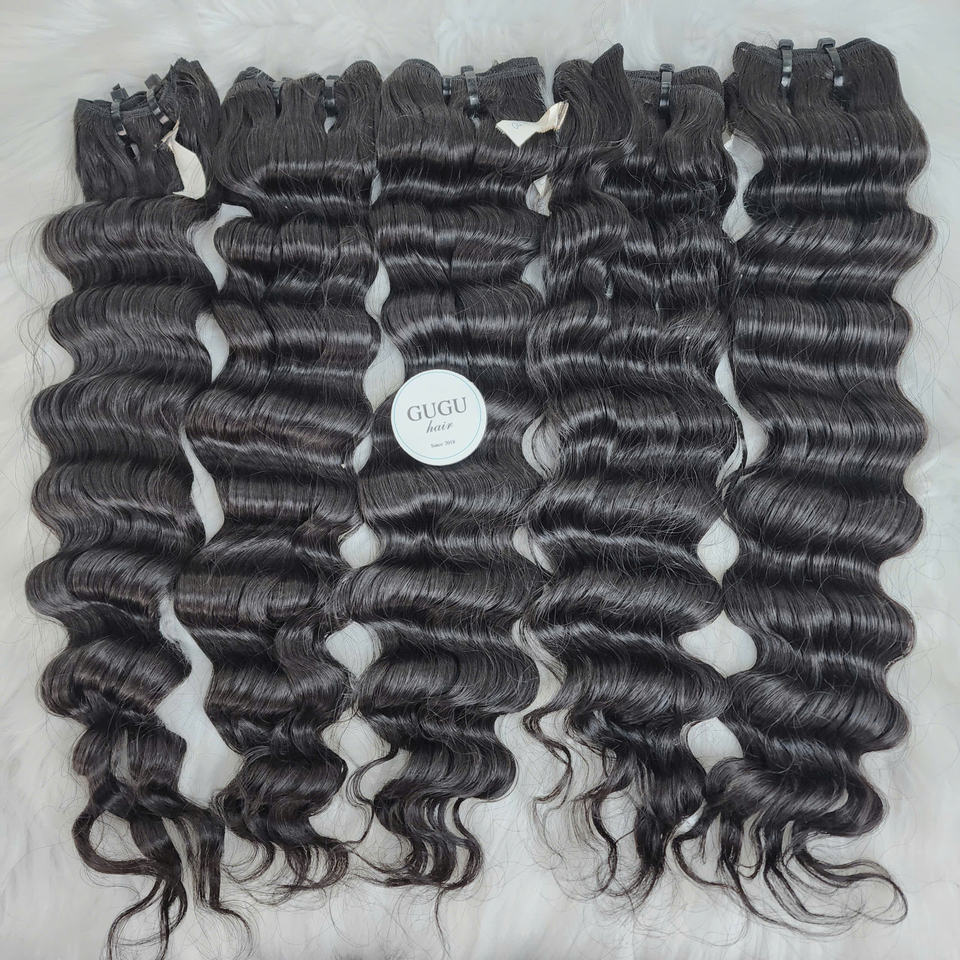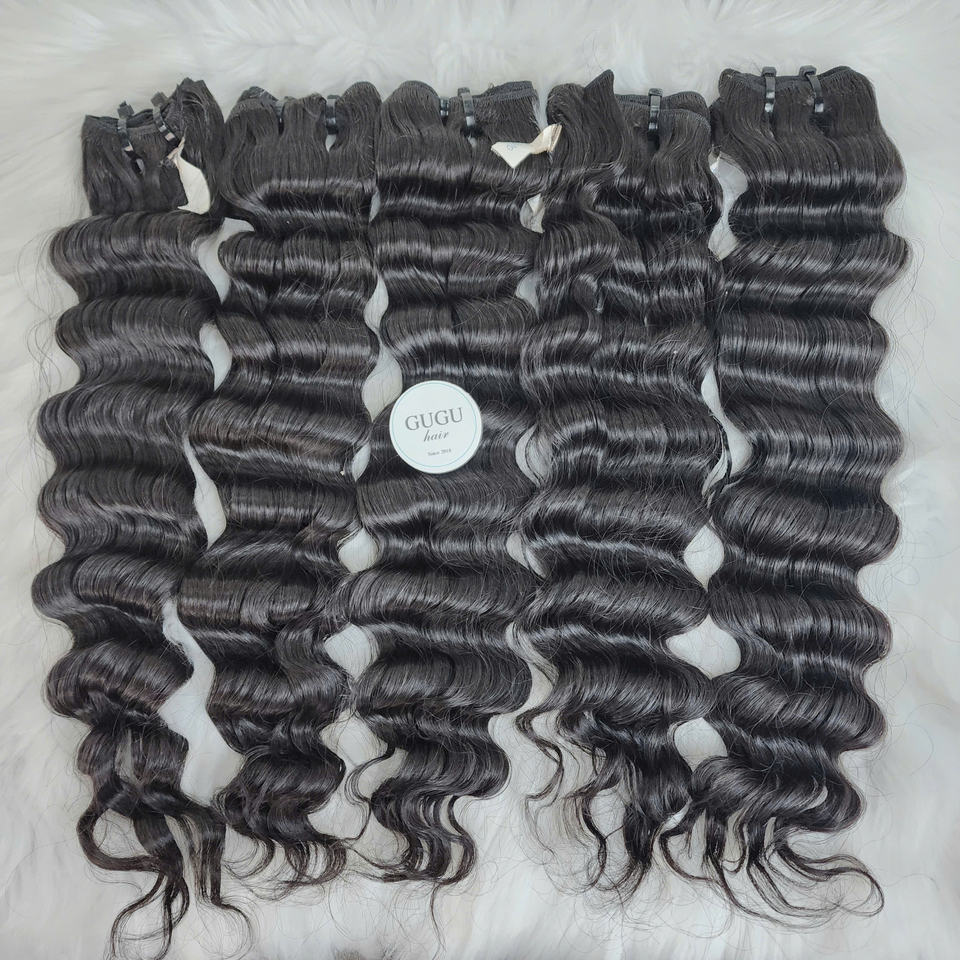 Extensiones de Cabello Humano Virgen Remy Vietnamita Más Vendidas, Estilo Ondulado Profundo Suelto, Color Personalizado, Tejido de Cabello a Máquina Doble