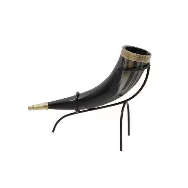 Cuerno para beber vikingo más vendido con soporte para cinturón de cuero Cuerno para beber vino Cuerno de búfalo raro y antiguo de artesanía de media luna