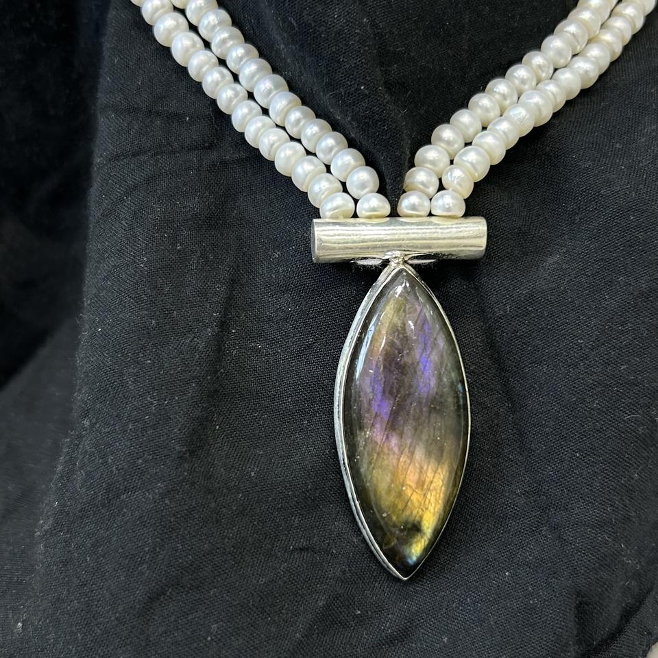 Collar de cadenas de moda de plata Vintage más vendido para mujer perla de agua dulce de labradorita altamente pulida para aniversario