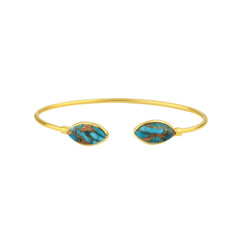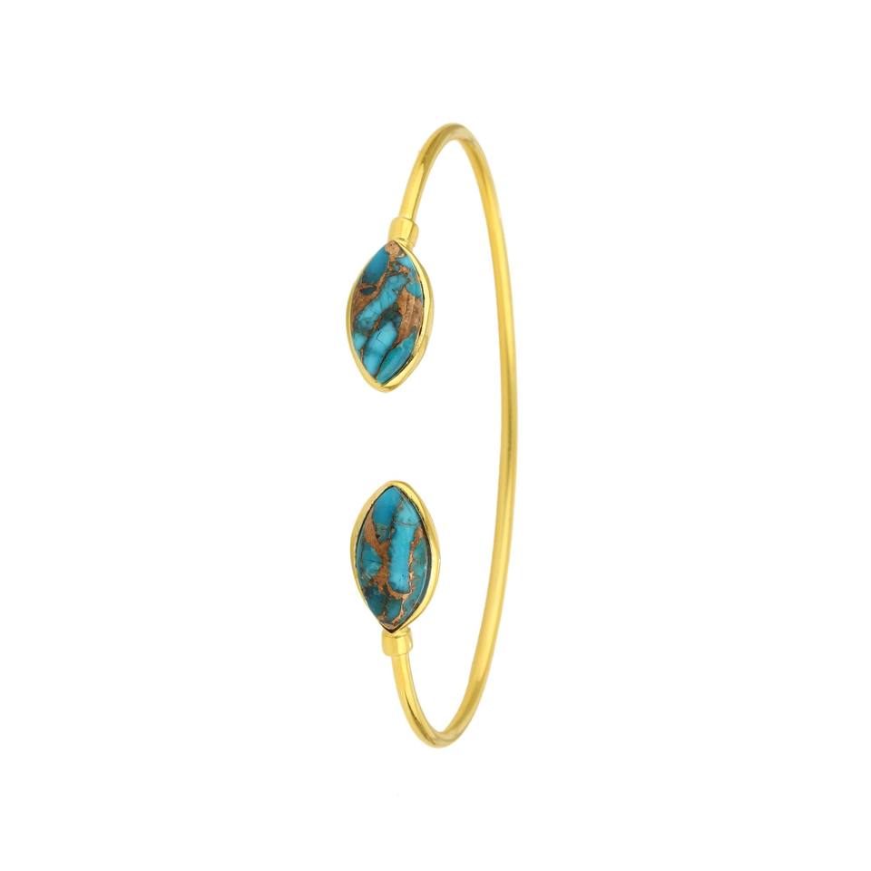 Brazalete de Plata de Ley 925 superventas al por mayor para mujer, brazalete de eslabones de cadena fina natural turquesa de cobre azul chapado en oro