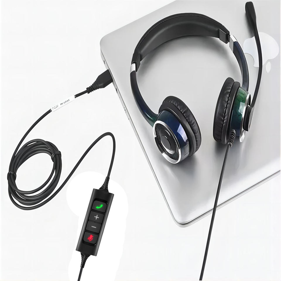Auriculares de ordenador USB binaurales con cable superventas Auriculares con cancelación de ruido con micrófono Boom Auriculares Para centro de llamadas