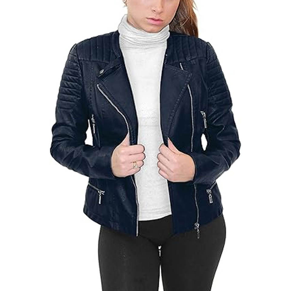 Chaqueta de cuero para mujer más vendida Chaqueta ajustada y de diseño liso Ropa informal personalizable para venta al por mayor