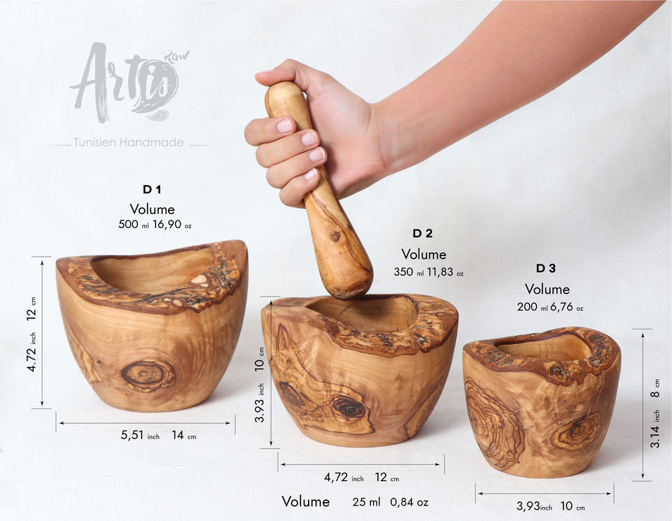 Maja de mortero rústica artesanal de madera más vendida, ayudantes de cocina, herramientas para especias de hierbas, madera de olivo Natural hecha a mano en TN