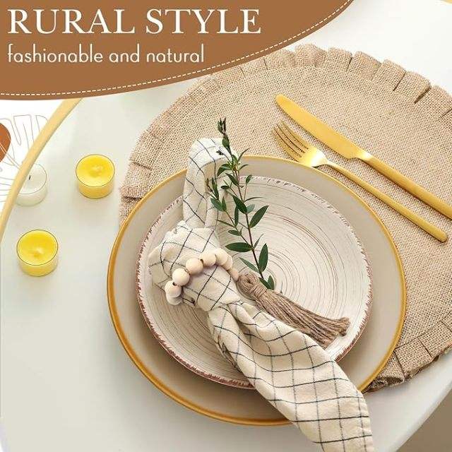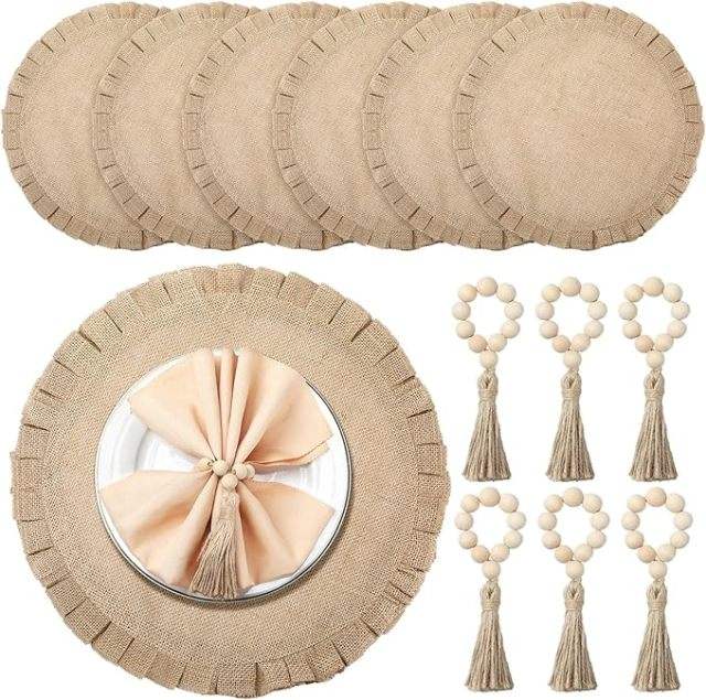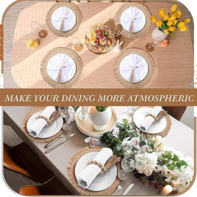 Mantel Individual Decorativo de Primera Calidad, Diseño Redondo con Cuentas de Vidrio, Base de Yute para Fiestas y Otras Funciones