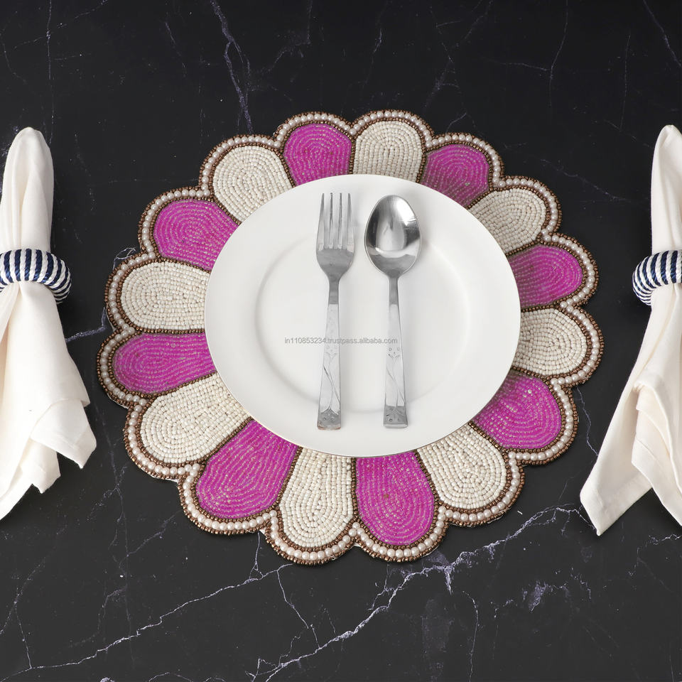 El mejor diseño temático, vajilla redondeada, mantel decorativo con cuentas de vidrio, Mantel Individual para fiestas y otras funciones