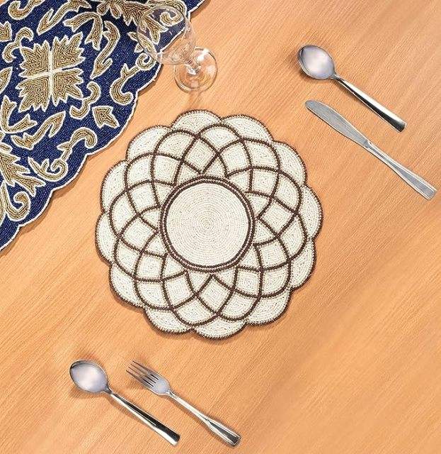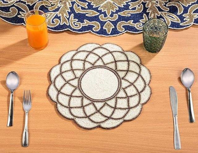 El mejor diseño temático, vajilla redondeada, mantel decorativo con cuentas de vidrio, Mantel Individual para fiestas y otras funciones