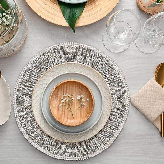 Vajilla redondeada con la mejor temática, Mantel Individual decorativo con cuentas de vidrio, Mantel Individual para fiestas y otras funciones