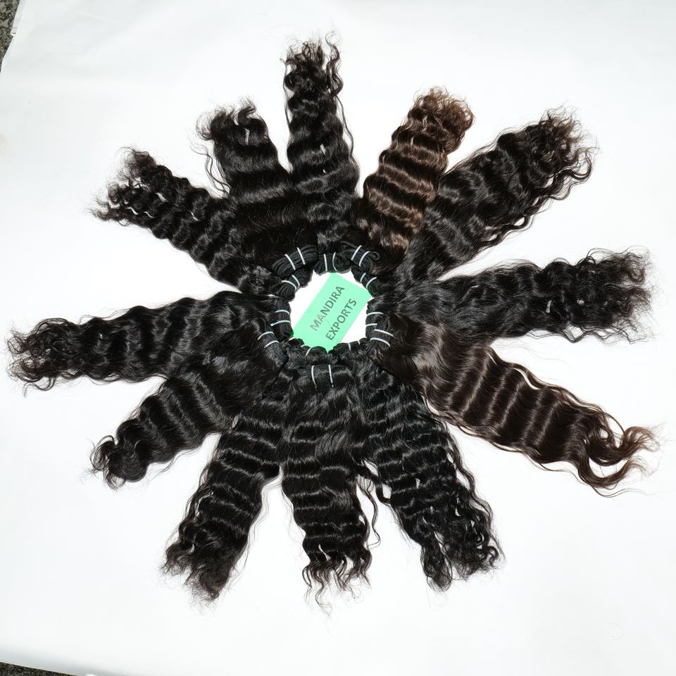 Extensiones de cabello humano indio ondulado, la mejor calidad, proveedor virgen Remy Natural, procesamiento químico indio, sin templo