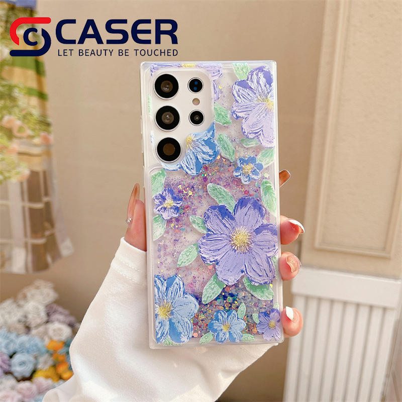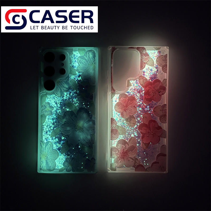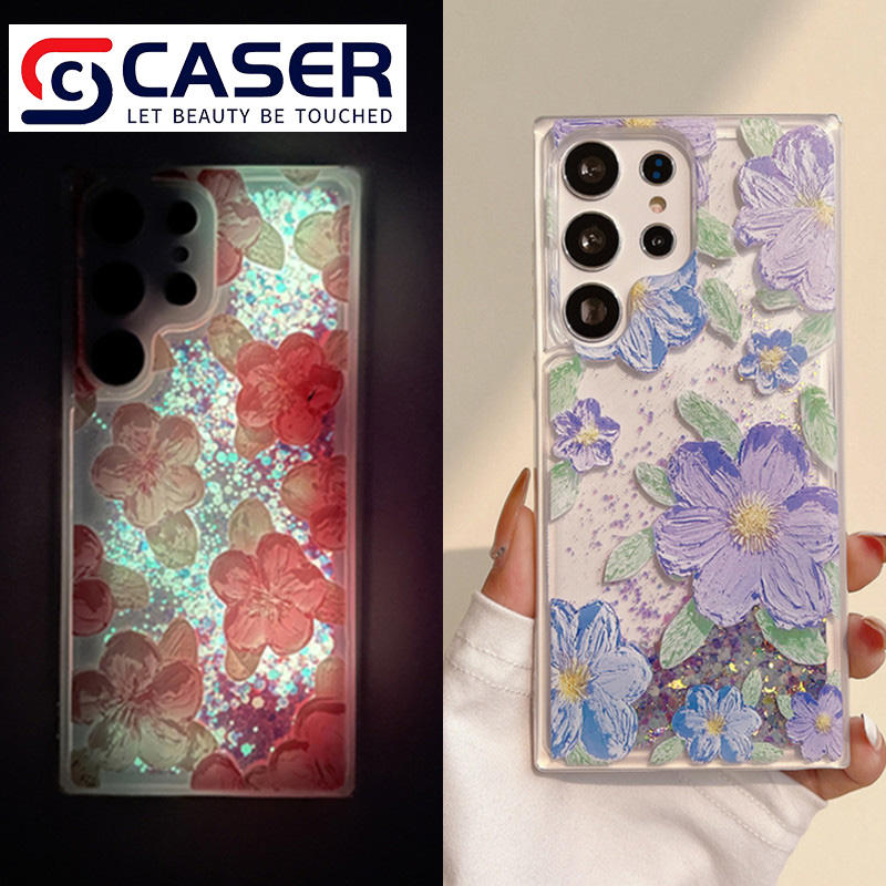 Funda de teléfono con purpurina líquida de flor de arena movediza luminosa de moda transparente para mujer Compatible con Samsung S22/S23Ultra