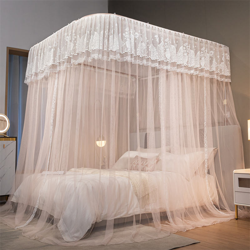 La mejor cubierta de dosel de cama con riel de guía de pista de acero inoxidable en forma de U, mosquitera portátil de tamaño King para bebé para uso doméstico, función plegada