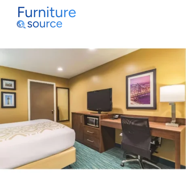 Muebles de hotel LaQuinta de madera natural y chapa de Vietnam OEM al mejor precio: Soluciones de mobiliario de cadena hotelera para habitaciones de cama asequibles