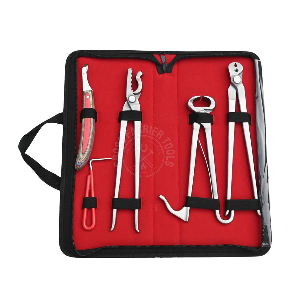 Cantidad mínima de pedido:1 estuche de kit de herramientas de herrero con alicate para clavos de pezuña