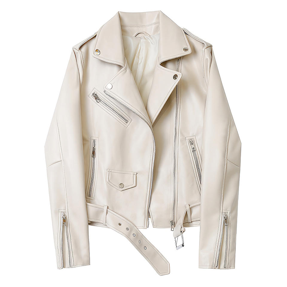 La mejor chaqueta de cuero de motorista de piel de oveja Beige para mujer, función transpirable de procesamiento terminado para la temporada de otoño