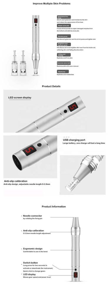 Est at OME me chargeable lectric chargeable recargable rorofessional icicroneedling ererma Pen con Digital iisplay crecreen para Hair OSS, tretch Marks
