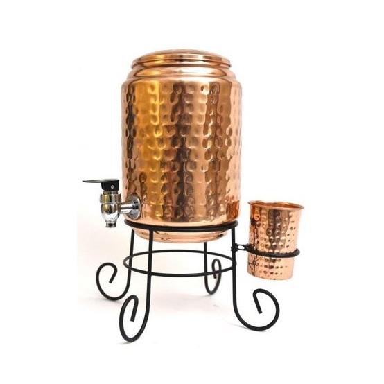 El mejor dispensador de agua superior de cobre con vidrio y juego de soporte dispensador de cobre para agua fabricado en India
