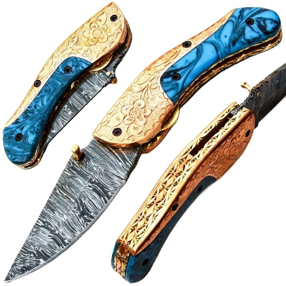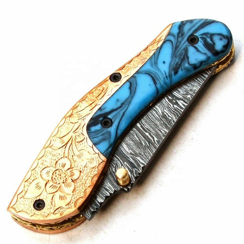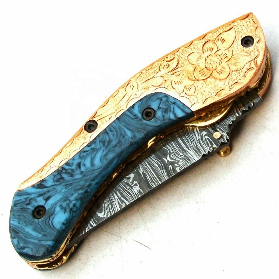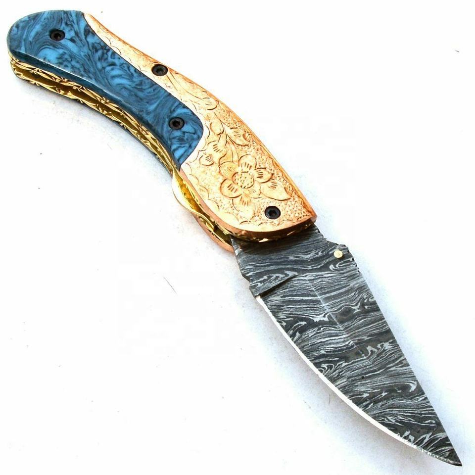 Nombre del producto:CUCHILLO PLEGABLE HERMOSO CUSTOM HECHO A MANO DE ACERO DE DAMASCO