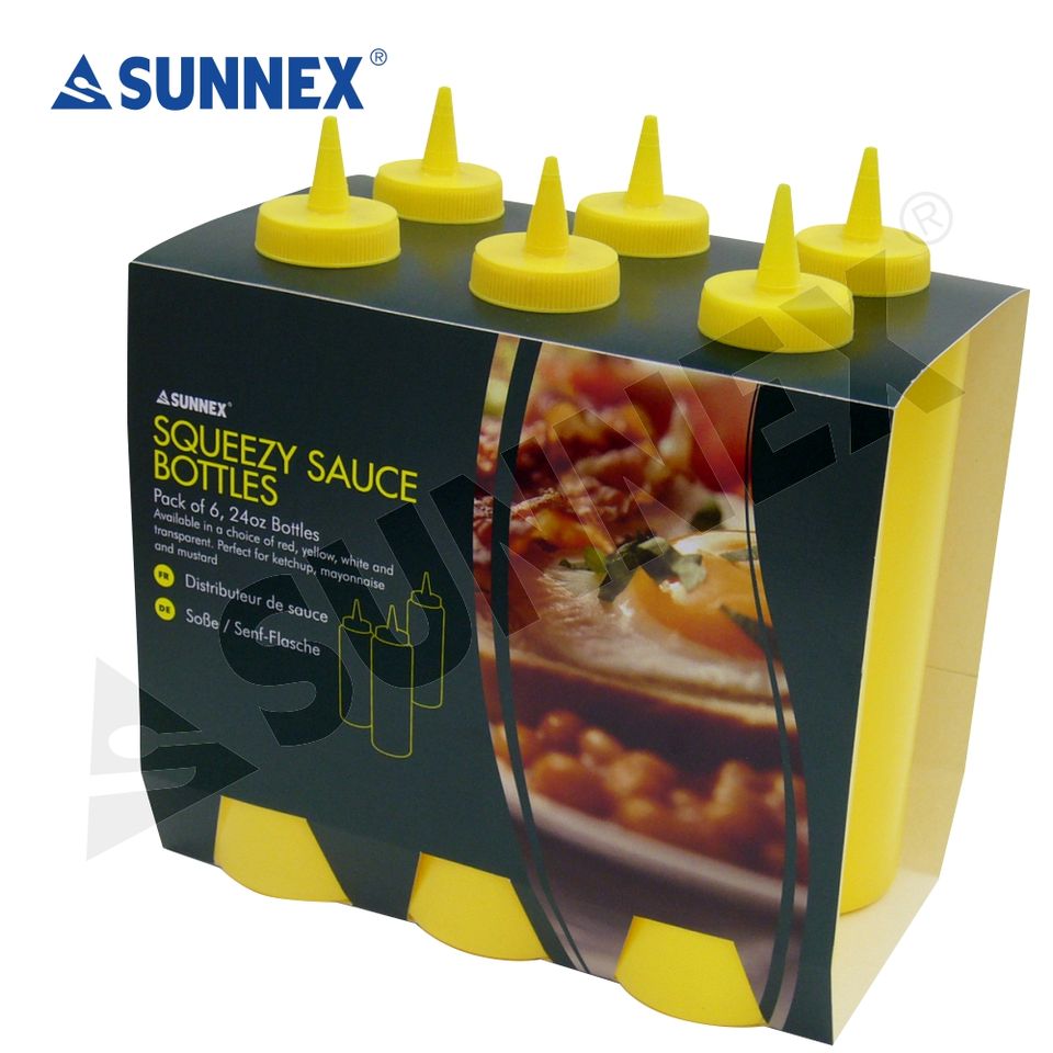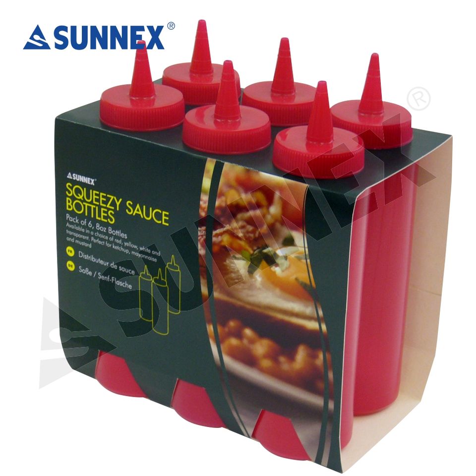 Dispensador y contenedor de condimentos para botella de salsa PE, vacío, al mejor precio, tres tamaños
