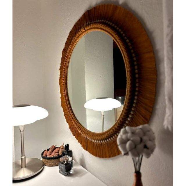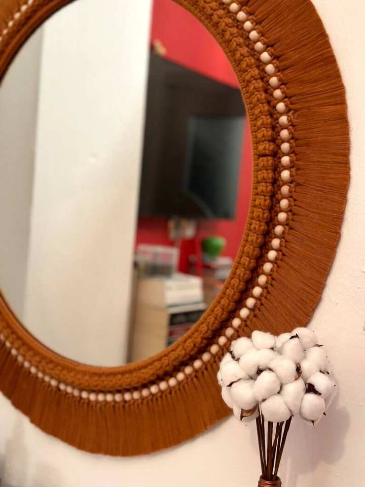 Nombre del producto:Espejo de pared boho macramé con flecos de macramé.