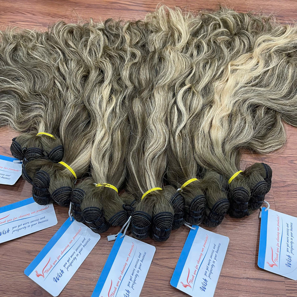 Extensiones de cabello de color piano de trama a mano ondulada Natural de la mejor calidad, cabello crudo vietnamita 100% sin desprendimiento ni enredos Sin desorden