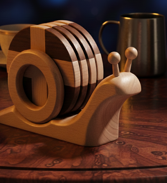 Posavasos de Madera con Diseño de Caracol Estilo Rústico de la Mejor Calidad, Acabado Natural, Accesorio para Bebidas a Precios Bajos