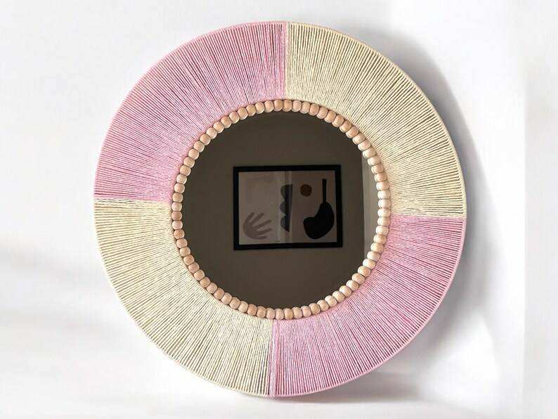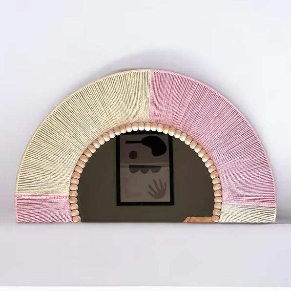 Nombre del producto:Espejo de pared boho macramé con flecos de macramé.