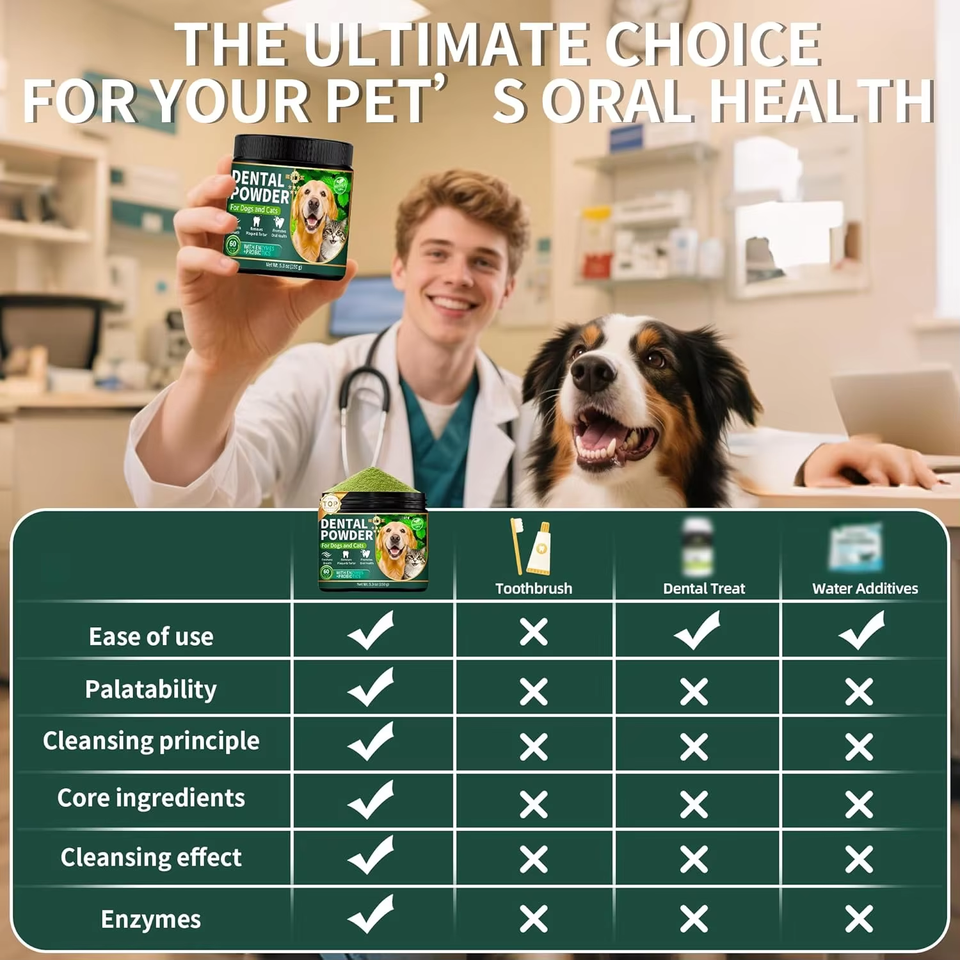 Polvo Limpiador Dental para Perros Más Vendido con Enzimas y Probióticos que Reduce la Placa Dental y el Mal Aliento en Perros