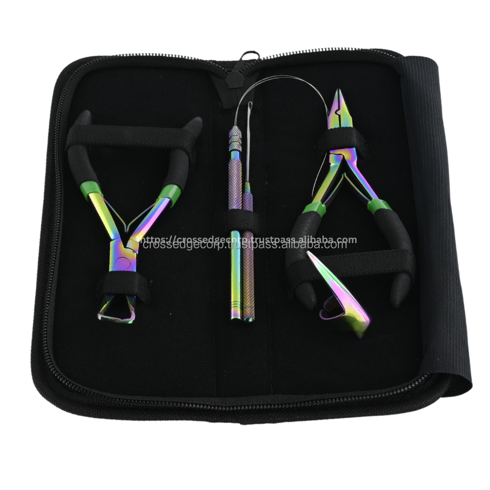 El kit de herramientas de extensión de cabello más vendido incluye 3 piezas Juego de alicates de microperlas Gancho para tirar del dedo con estuche Color arcoíris