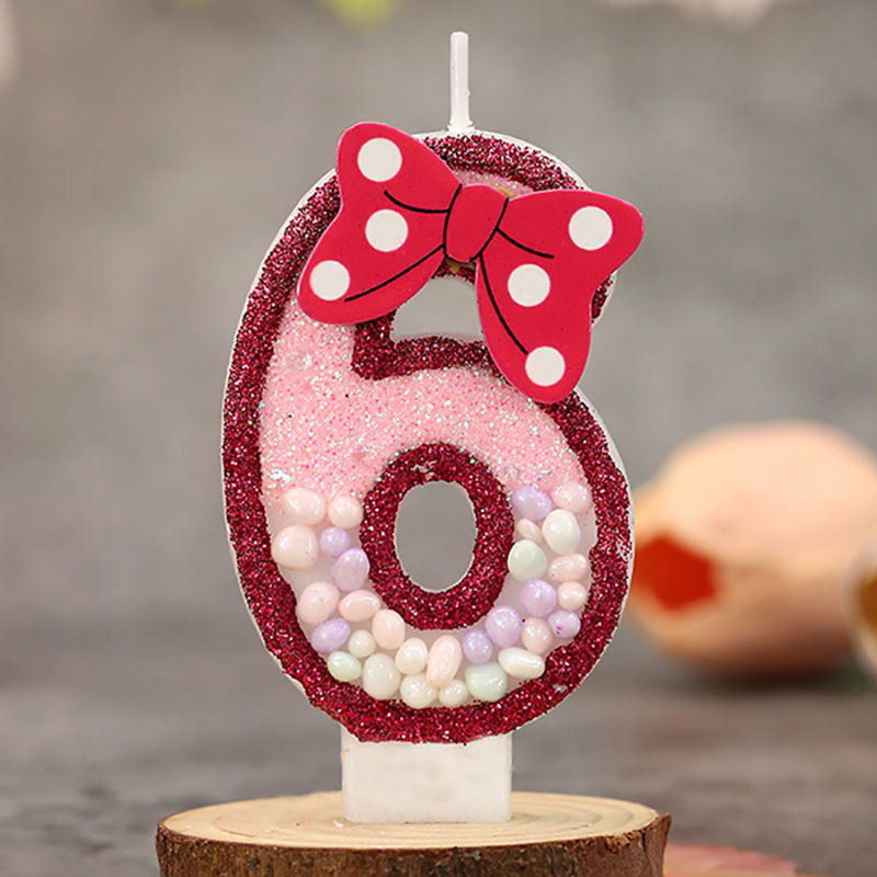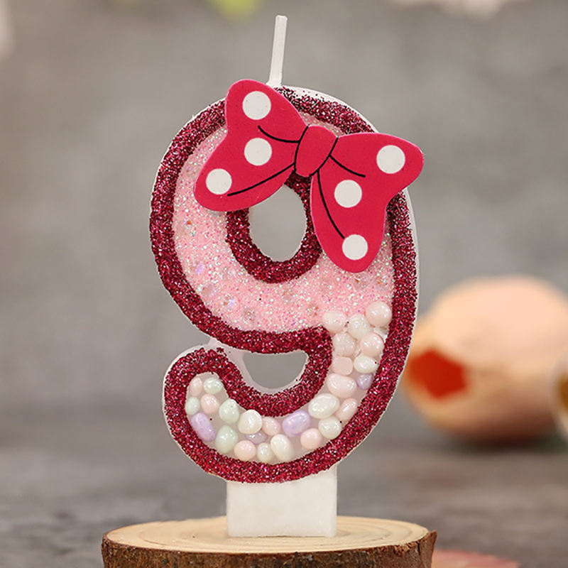 Velas de cumpleaños con número de parafina superventas, lazo hecho a mano, cumpleaños de niña para decoración de pastel, decoración creativa