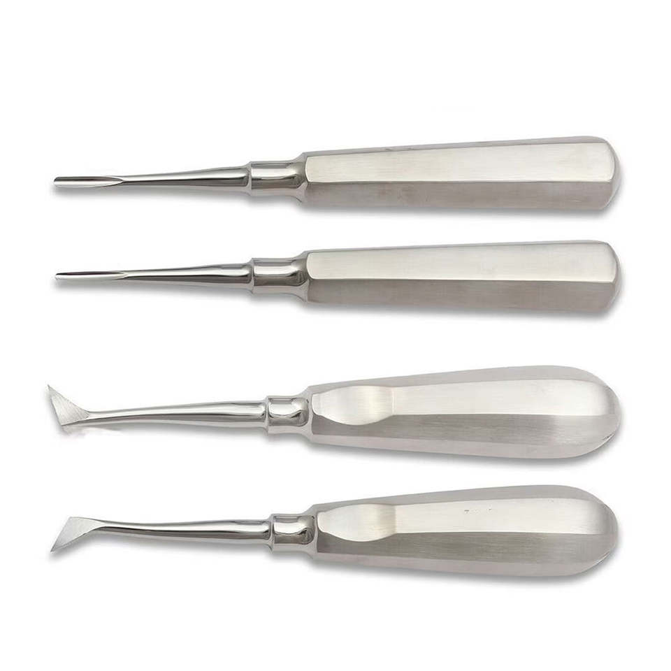 Juego de 4 Elevadores Dentales Manuales de Acero para Extracción de Dientes, Certificación CE, Consumibles Dentales para Dentistas SurgiRight