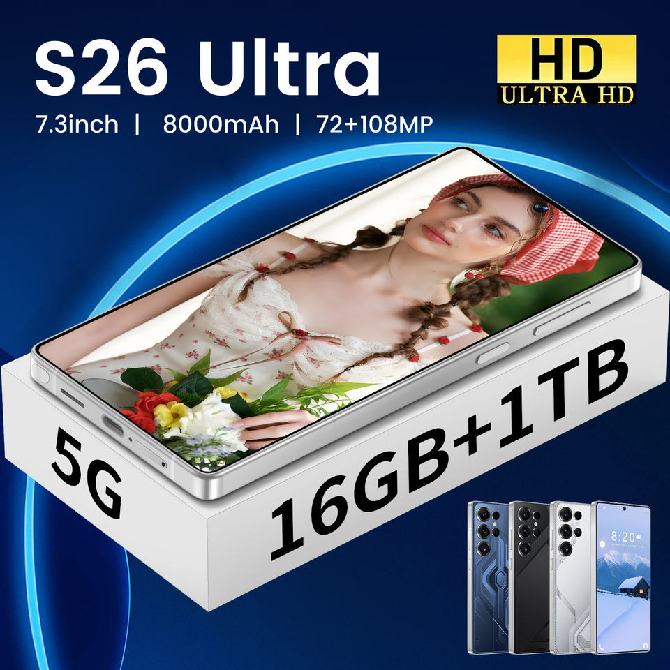 Teléfono Móvil Inteligente 5G S26 Ultra, el Más Vendido, Venta al por Mayor Global, 7.3 Pulgadas, 16 GB + 1 TB, 108 MP, 8000 mAh, Android 14, Alta Calidad